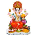 This beautiful white marble dust statue depicts the Hindu deity Ganesha, the elephant-headed god of wisdom and prosperity. Ganesha is traditionally worshipped at the start of any new venture, and this statue would be a perfect addition to your home or office. The statue is 13 inches tall and is made of high-quality marble dust. It is handcrafted and hand-painted, making it a unique and one-of-a-kind piece.