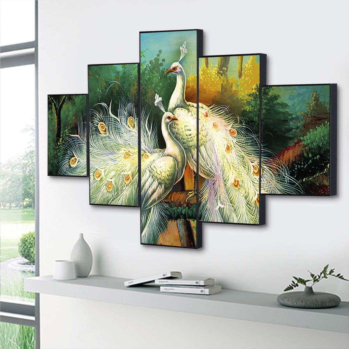 Saumic Craft Presents This Set Of 5 Amazing Paintings For Your Wall . The Painting Will Completely Change The Atmosphere Of The Room Whire It is Placed . The Paintimg Is Made On Heavy Wooden Board And Has A Digital UV Coating On It Which MAKES It Very Easy To Clean . Pricing Of The Product Is Made Very Reasonable From Our Brand As Per The Quality We Are Providing To Our Customers, We Assure That You Will Not Regret Your Purchase, Saumic Craft Is Well Known for Its After Sale Services And In Case If You Feel Some Problem With Any Of Our Product Than You Can Replace It For Free With No Additional Cost . This painting offers a stylish look to your wall as this piece includes three themes it is vastu and also have the essence of abstract and modern art which makes this peice unique and stylish . The 5 pieces wall painting is made with high-quality material, the HD quality print looks fantastic and bright it will not fade easily. With just few simple steps you can mount it to the wall. Thank You For Yor Purchase