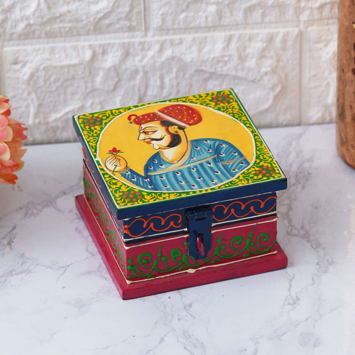 Store your precious jewels in style with our exquisite handcrafted wooden jewellery box. Crafted with care and attention to detail, this box is perfect for organizing and safeguarding your favourite pieces. The timeless design adds a touch of elegance to any dresser or vanity, while the plush velvet interior ensures your jewellery stays safe from scratches and tangles. With multiple compartments and a secure latch closure, this box is both functional and beautiful. Treat yourself or someone special to this luxurious jewellery storage solution today!