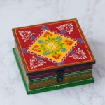 Store your precious jewels in regal style with our handcrafted wooden Rajasthan jewellery box. Inspired by the rich heritage of Rajasthan, this exquisite box features intricate detailing and vibrant colors. Made from high-quality wood, each box is meticulously crafted by skilled artisans, making it a unique and luxurious storage solution for your jewellery collection. The traditional design adds a touch of elegance to any dresser or vanity, while the plush velvet interior ensures your jewellery stays safe and organized. Treat yourself or someone special to the timeless beauty of Rajasthan with this stunning jewellery box.